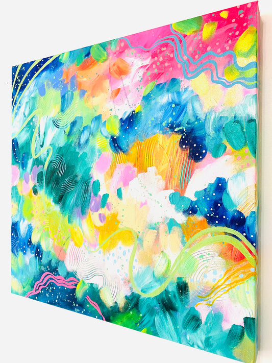 "Singing in the Rain" 20x20 inch original abstract painting on canvas