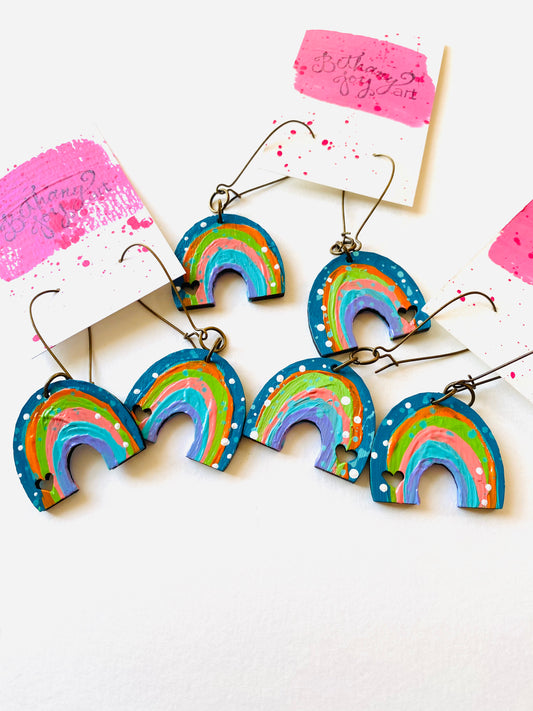 Colorful, Hand Painted, Rainbow Shaped Earrings Color Palette 9