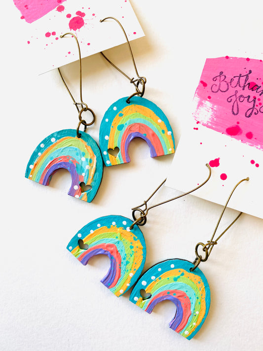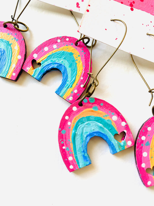 Colorful, Hand Painted, Rainbow Shaped Earrings Color Palette 5