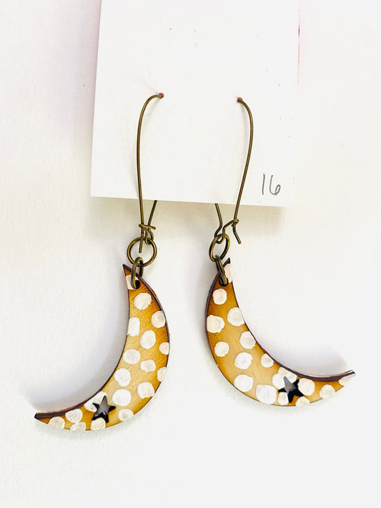 Colorful, Hand Painted, Moon Shaped Earrings 16
