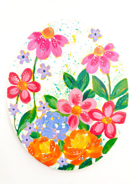 Spring Has Sprung Floral Original Painting on Oval Canvas