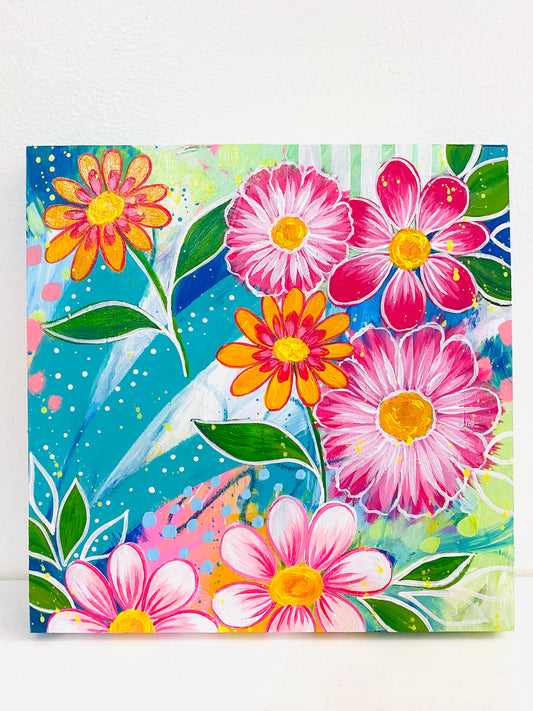 "No Place Like Home" Floral Original Painting on 8x8 inch Canvas