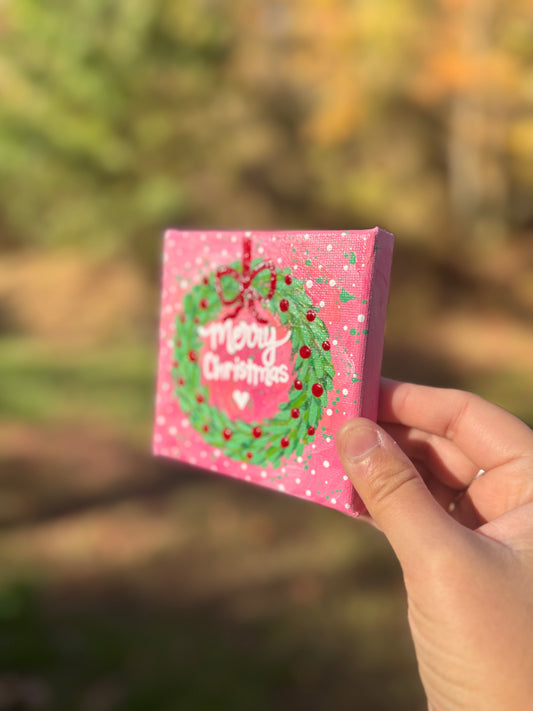 Christmas Wreath Mini Canvas Pink Merry Christmas