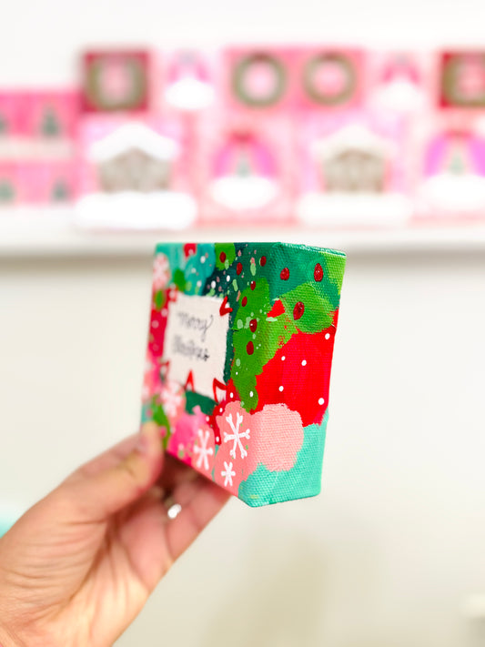 Christmas Wreath Mini Canvas Pink Merry and Bright