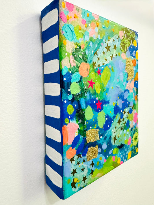 “Dancing Among the Stars" Abstract Collage Painting on 6x8 inch canvas