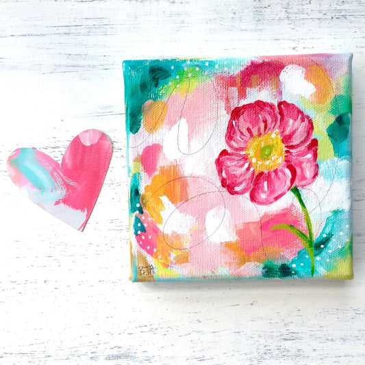 Vibrant Pink Flower Original Painting on 5x5 inch Canvas