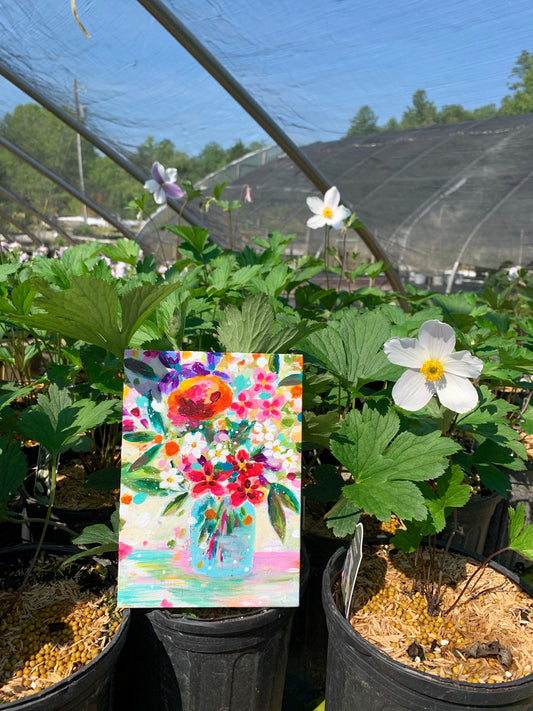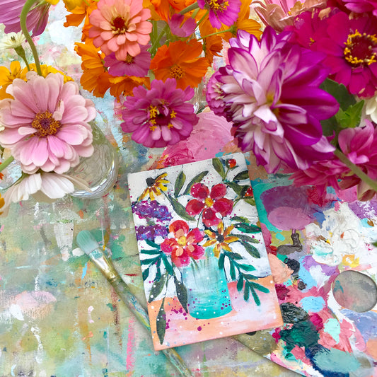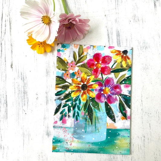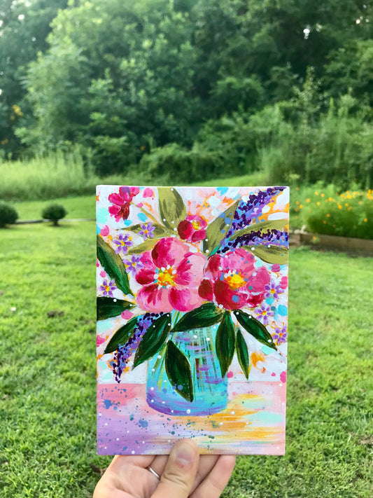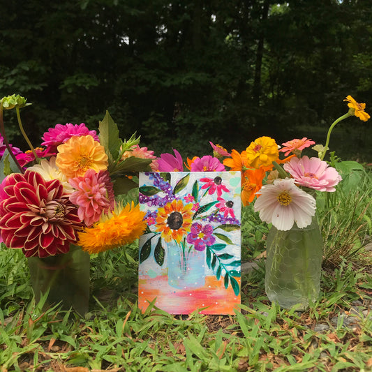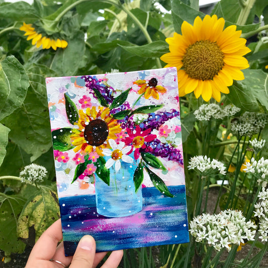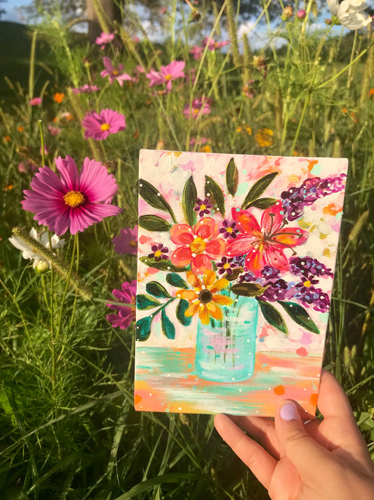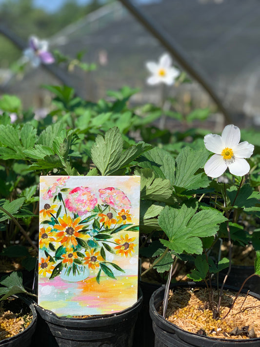 "Sweet as Honey" Vase of Flowers Original Painting on 5x7 inch Framed Canvas