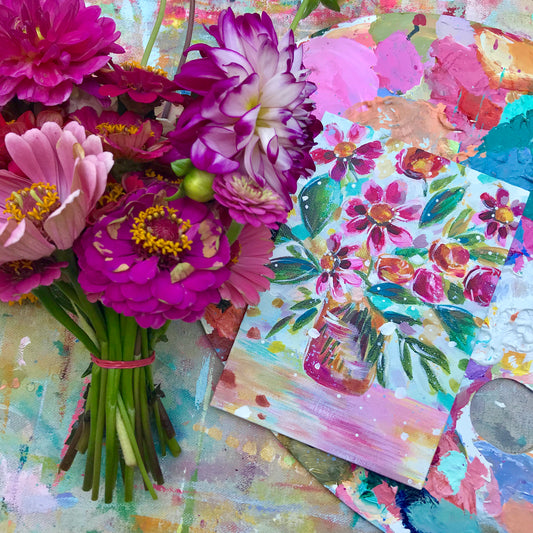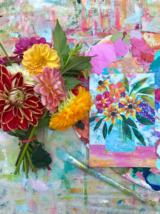 August Daily Painting Day 5 “Always Bring Flowers” 5x7 inch Floral Original