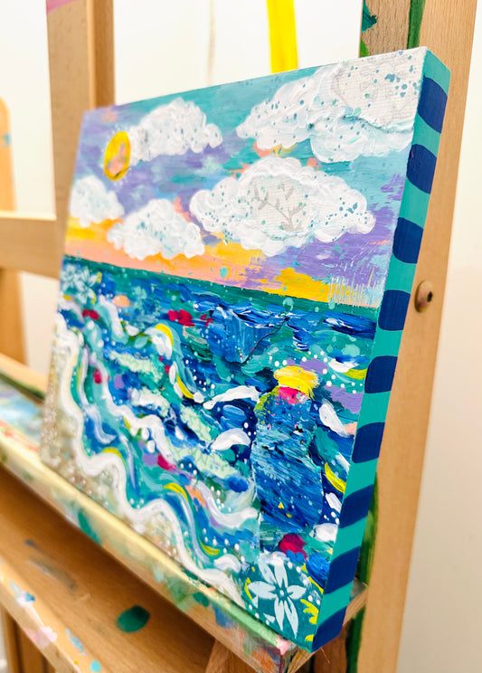 "Coastal Collage" Original Beach Painting on 8x8 inch wood panel