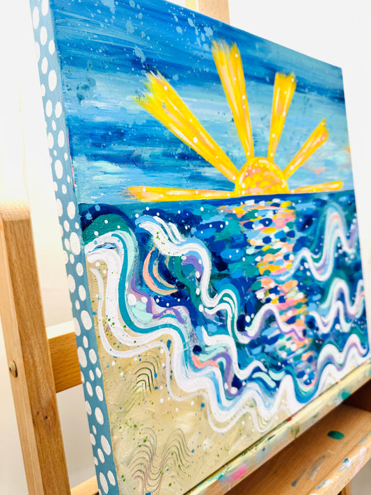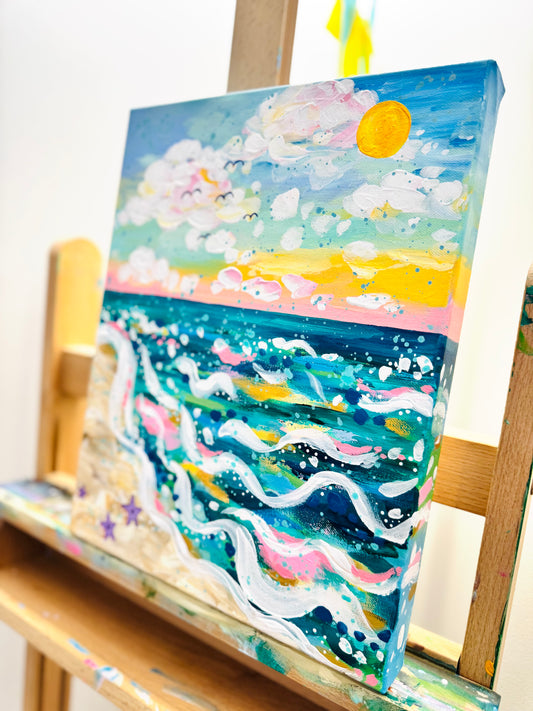 "Wave After Wave" Original Beach Painting on 16x16 inch canvas