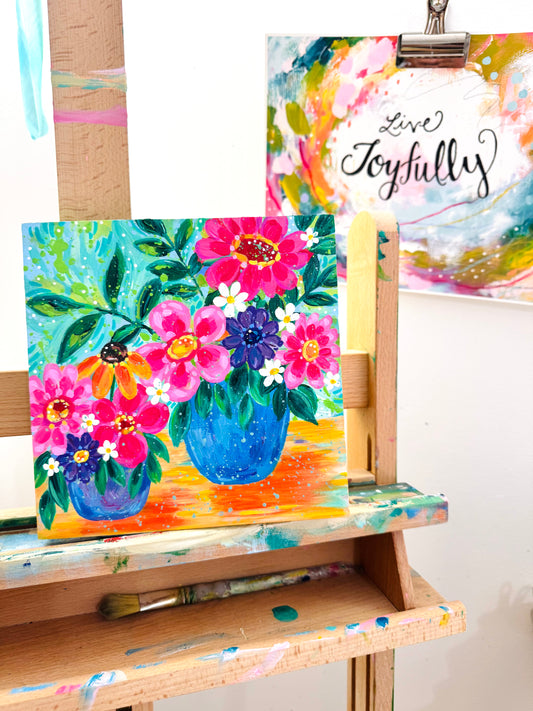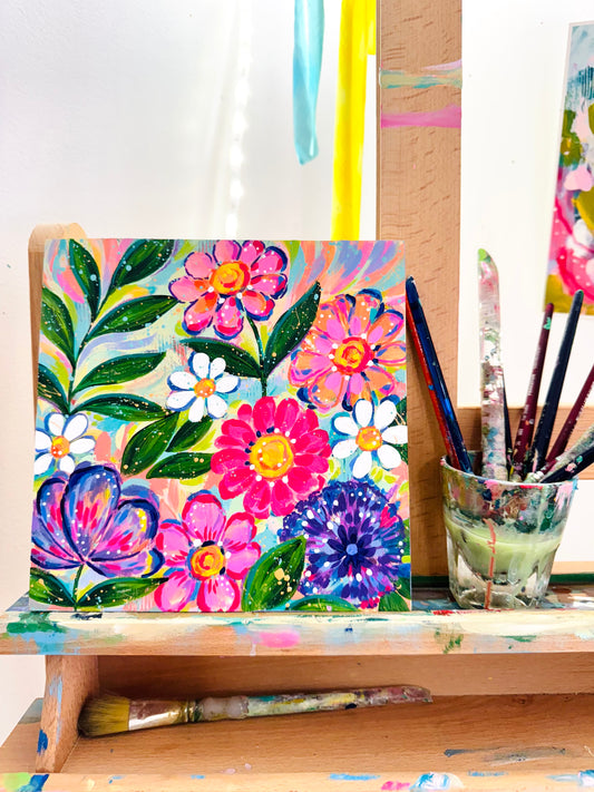 “Blossoming Brushstrokes” 8x8 inch original floral painting on wood panel