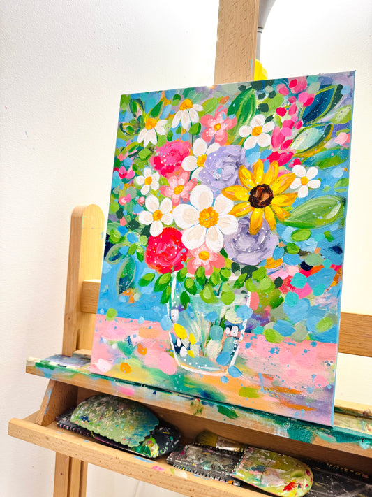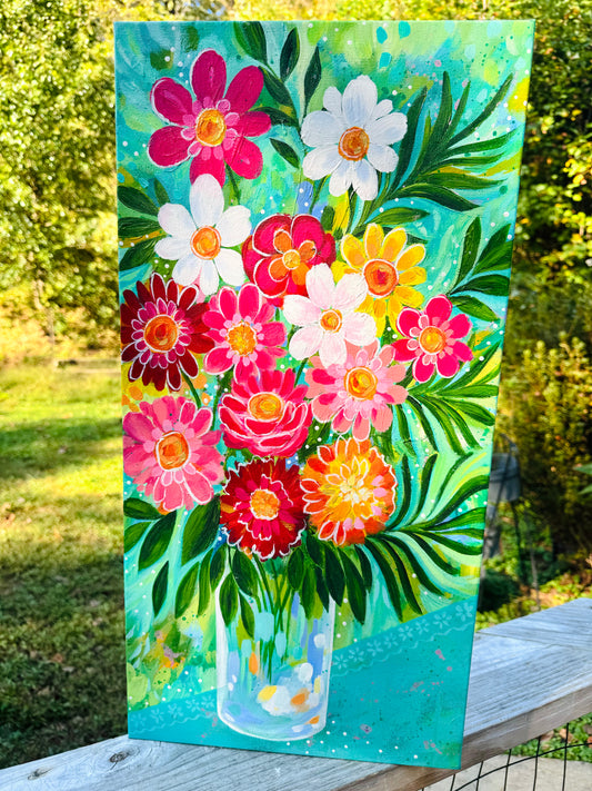 "Picnic Flowers” Floral Original Painting on 12x24 inch canvas
