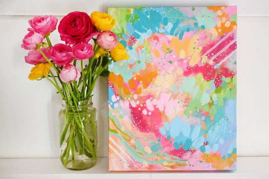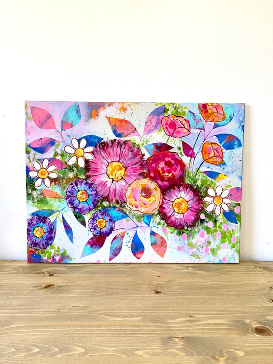 "Bloom Wildly" Floral Original Painting on 20x24 inch canvas