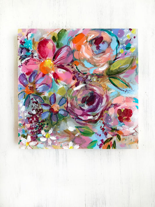 New Spring Floral Mixed Media Painting on 8x8 inch wood panel no.4