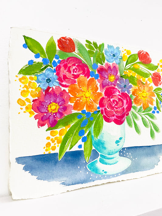 Full Bloom Floral Original Painting on Deckled Edge Watercolor Paper