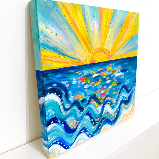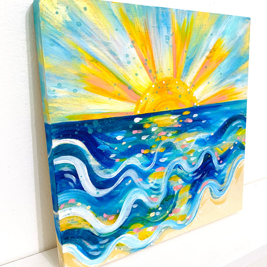 "Sunshine Life" 8x8 inch Original Coastal Inspired Painting on Wood Panel with painted sides