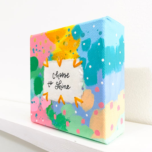 Choose to Shine 4x4 inch original abstract canvas with embroidery thread accents