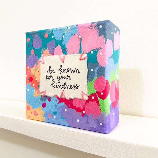Be Known For Your Kindness 4x4 inch original abstract canvas with embroidery thread accents