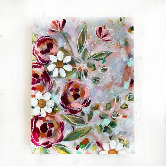 New Spring Floral Mixed Media Painting on 9x12 inch wood panel