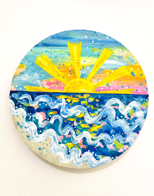 "Chasing Coastal Light" Original Beach Painting on Circle Canvas