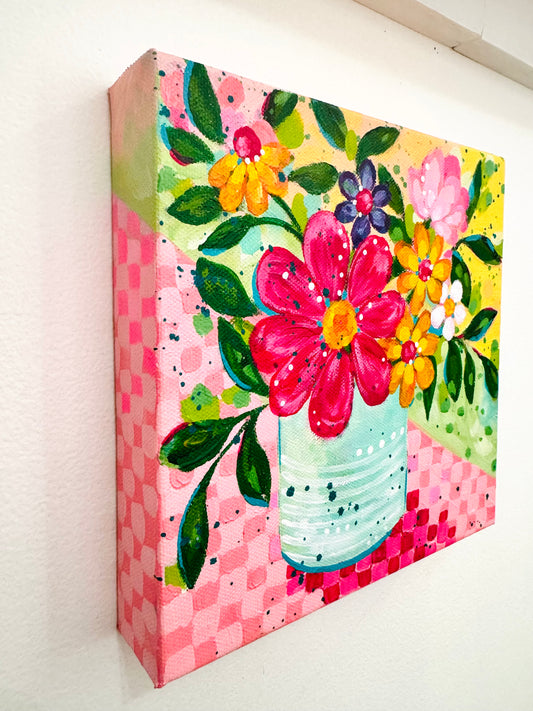 “Summer Soiree” 8x8 inch original floral painting on canvas