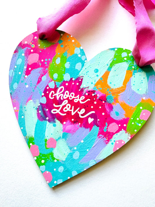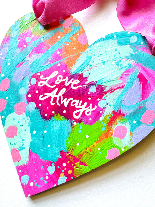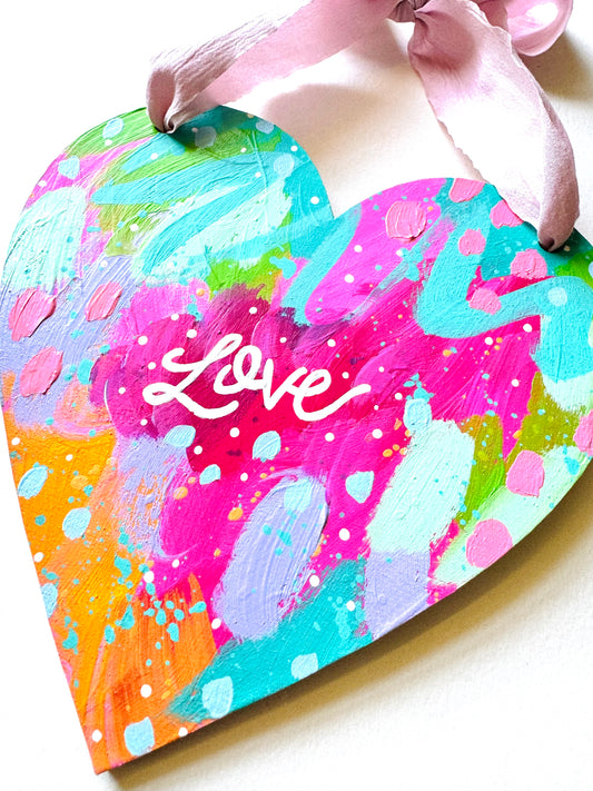 Original painting, wooden heart wall hanging with bow no.5