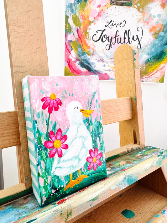 “Spring Awakens” Floral Duck Painting on 4x6 inch canvas