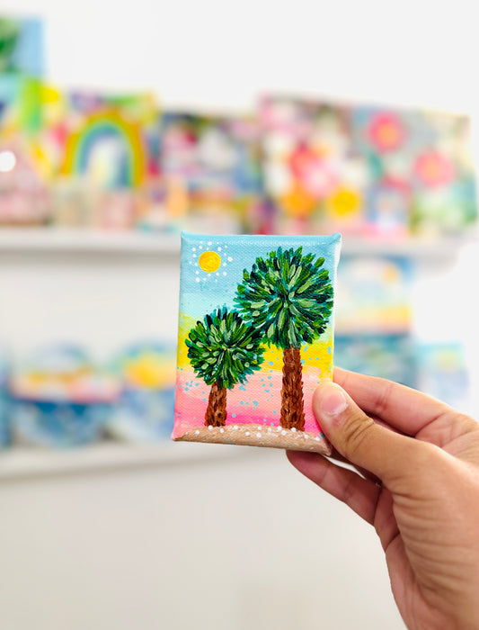 "Sunlit Palms" Original Beach Painting on 3x4 inch mini canvas