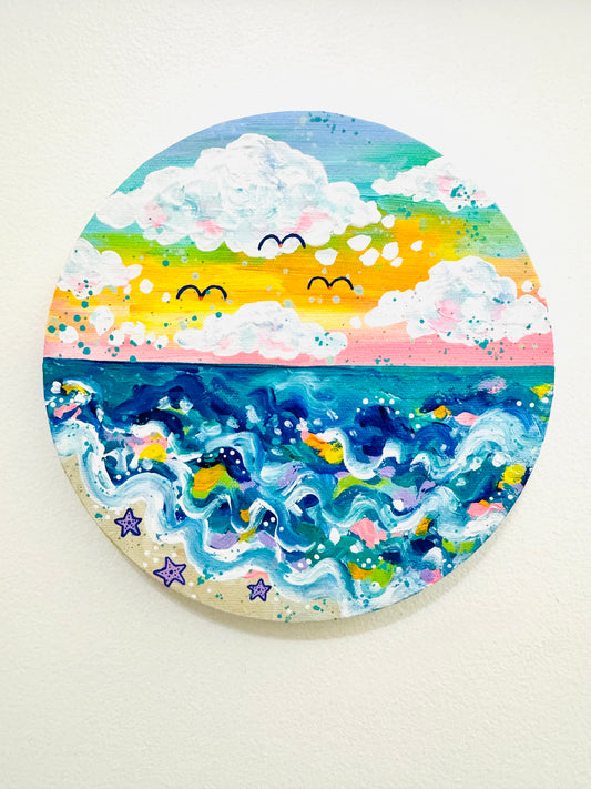 "Morning at the Shore" Original Beach Painting on Circle Canvas