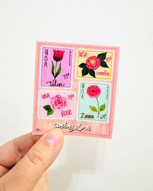 Sending Love Postage Stamp Inspired Vinyl Sticker January 2025 Sticker of the Month