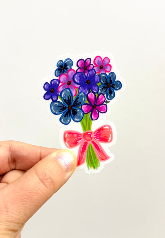 Floral Bouquet with Pink Bow Vinyl Sticker December 2024 Sticker of the Month