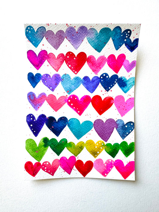 Rainbow Watercolor Hearts Original Painting on 5x7 inch paper no. 4