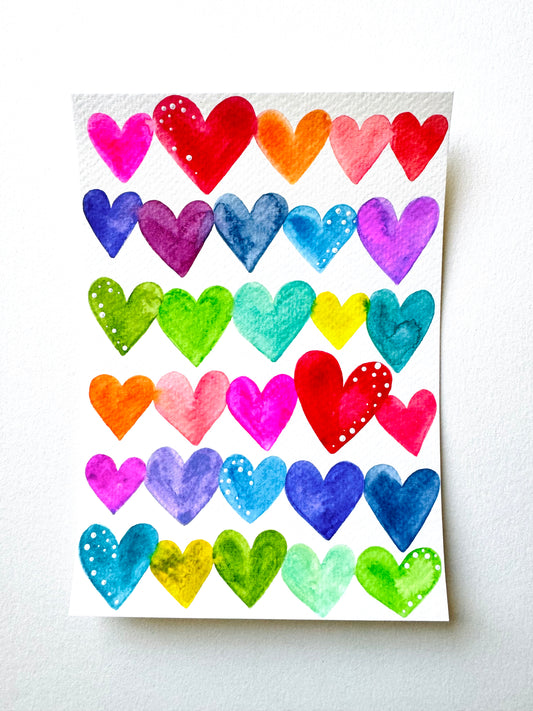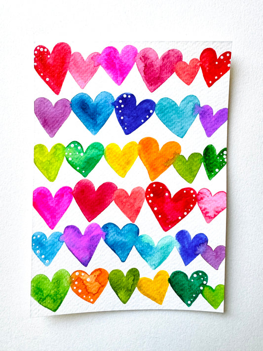 Rainbow Watercolor Hearts Original Painting on 5x7 inch paper no. 1