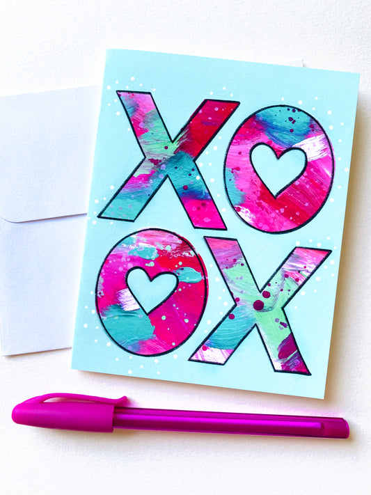 Metallic Shimmer Rainbow Watercolor Hearts Original Painting on 5x7 inch paper