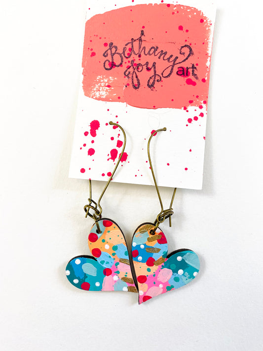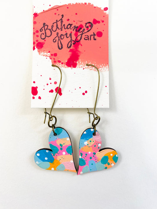 Colorful, Hand Painted, Heart Shaped Earrings 145