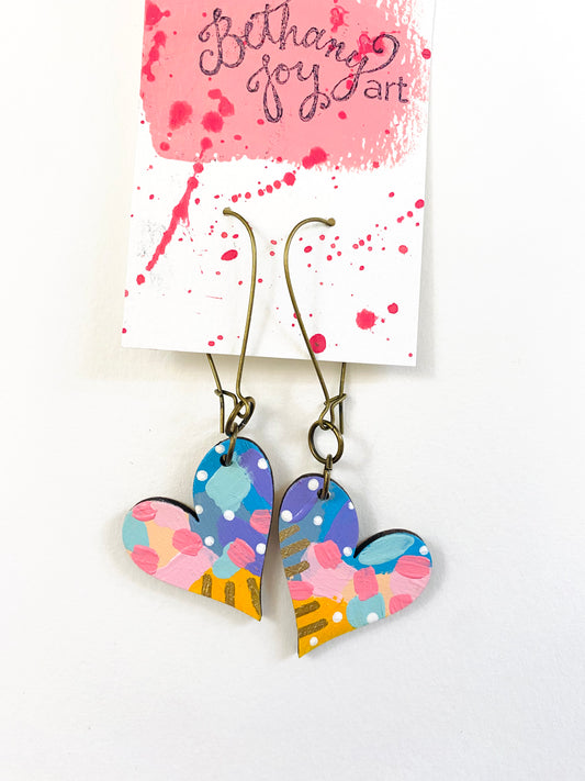 Colorful, Hand Painted, Heart Shaped Earrings 205