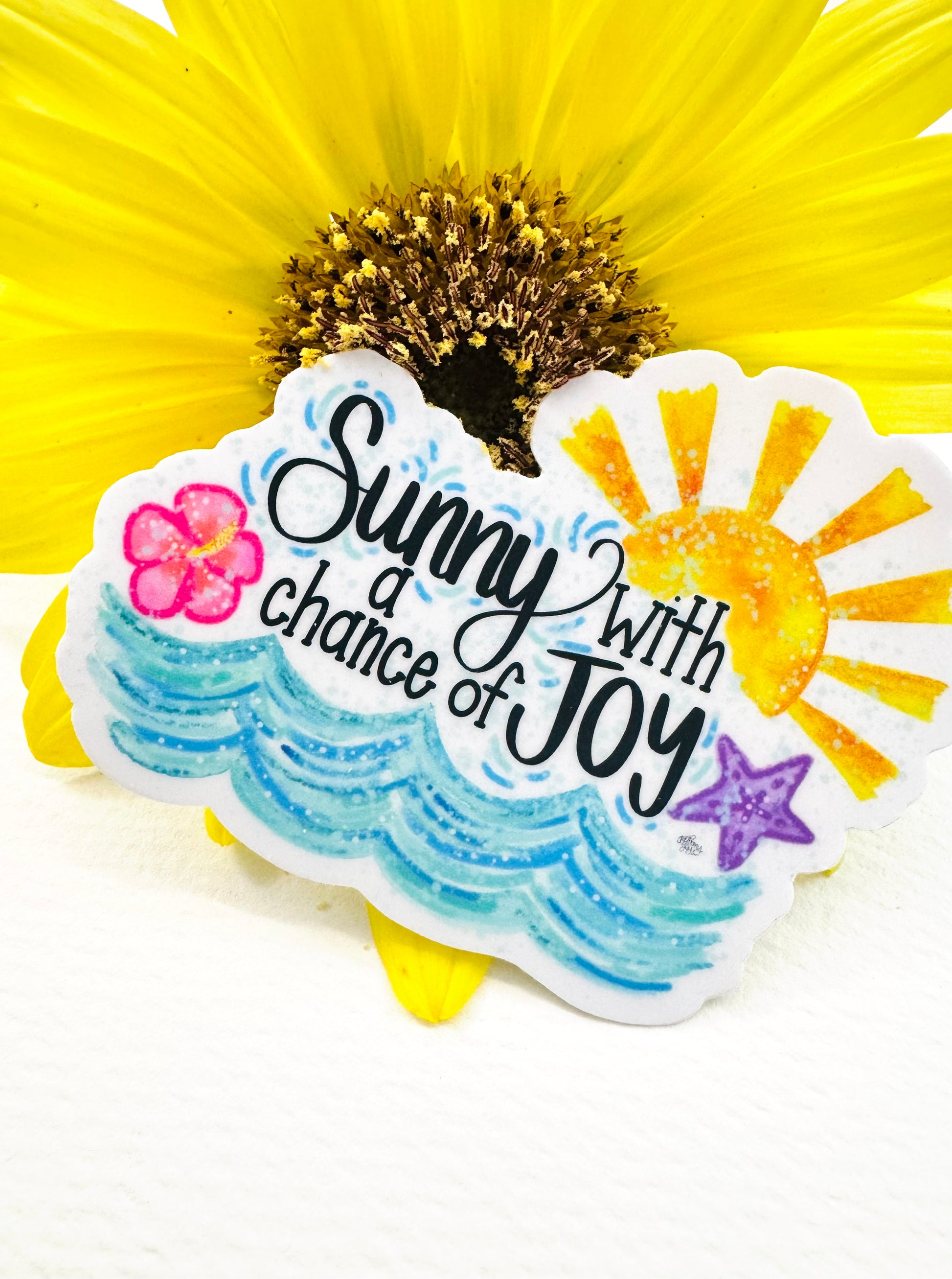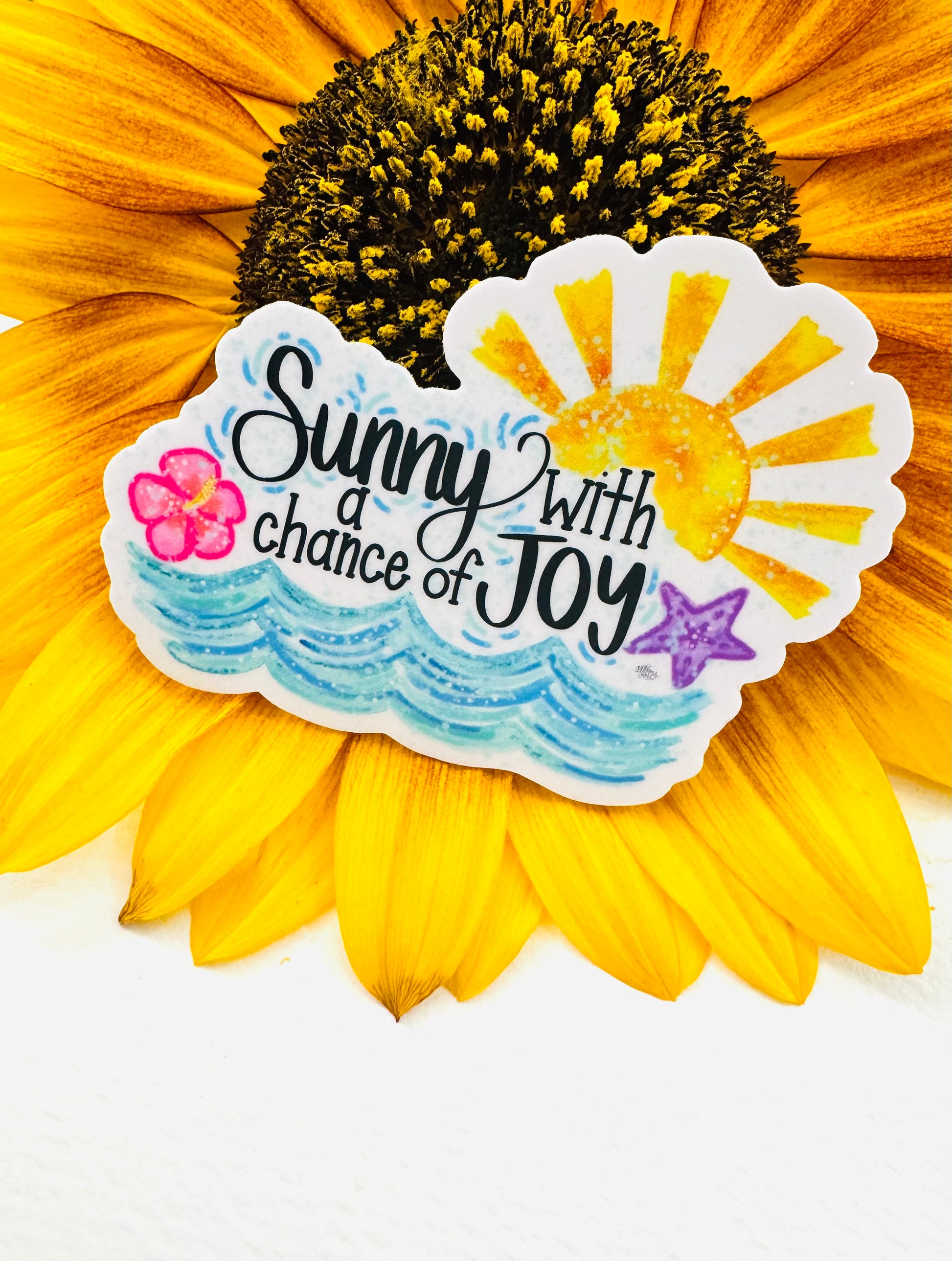 This listing is for a “Sunny with a chance of Joy” vinyl sticker.