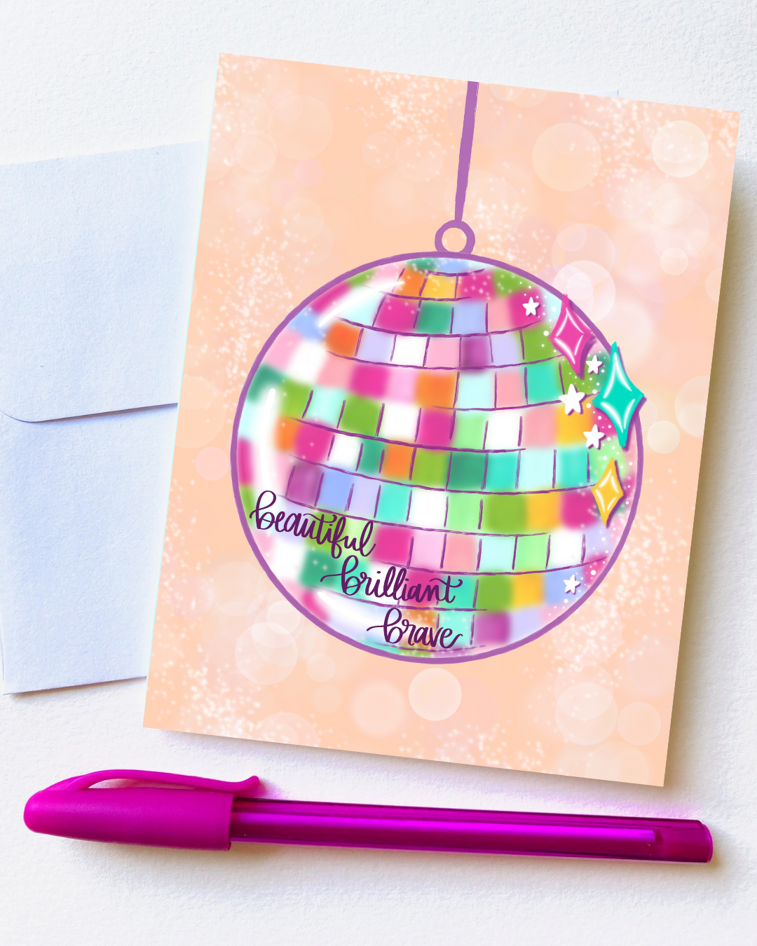 "Beautiful, Brilliant, Brave Disco Ball” Card with Envelope