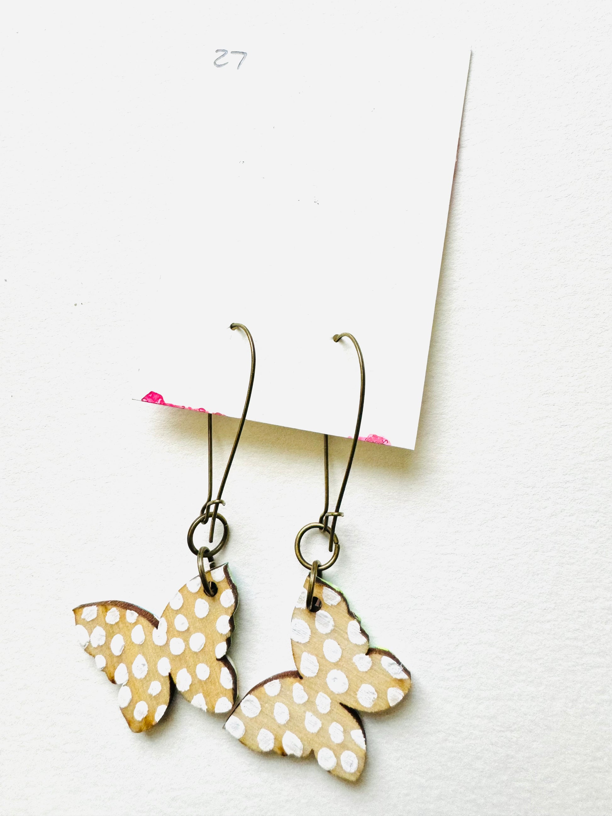Want to learn a bit about my process? All the different earring shapes were designed and drawn out by me, then my husband brings the wooden shapes to life! Next, I paint and varnish these sweet shapes (both sides!) and assemble the earrings for you to wear with all your favorite outfits! These cuties go through quite the process and they're handmade with you in mind every step of the way! :)