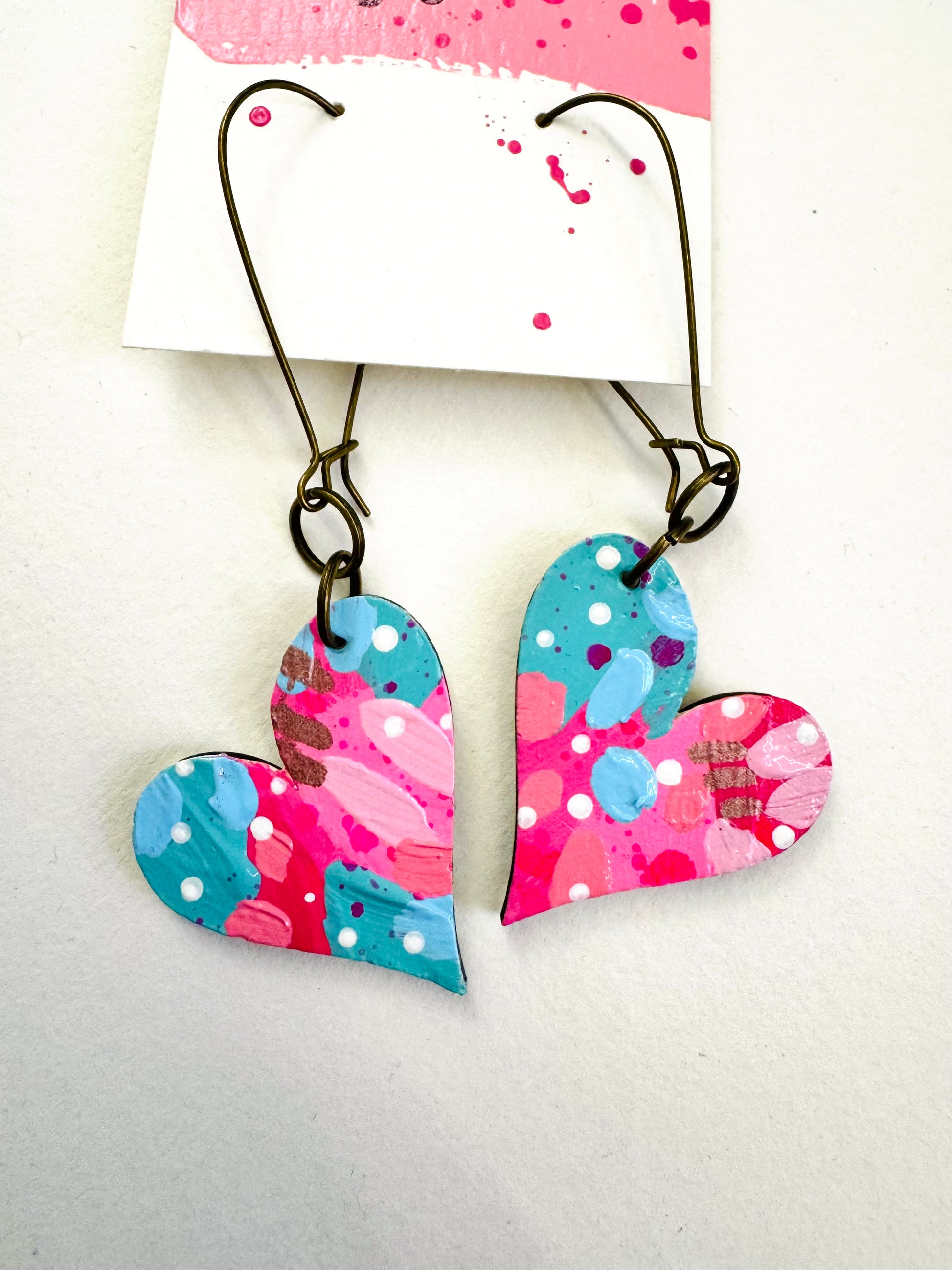 Colorful, Hand Painted, Valentine Heart Shaped Earrings 1