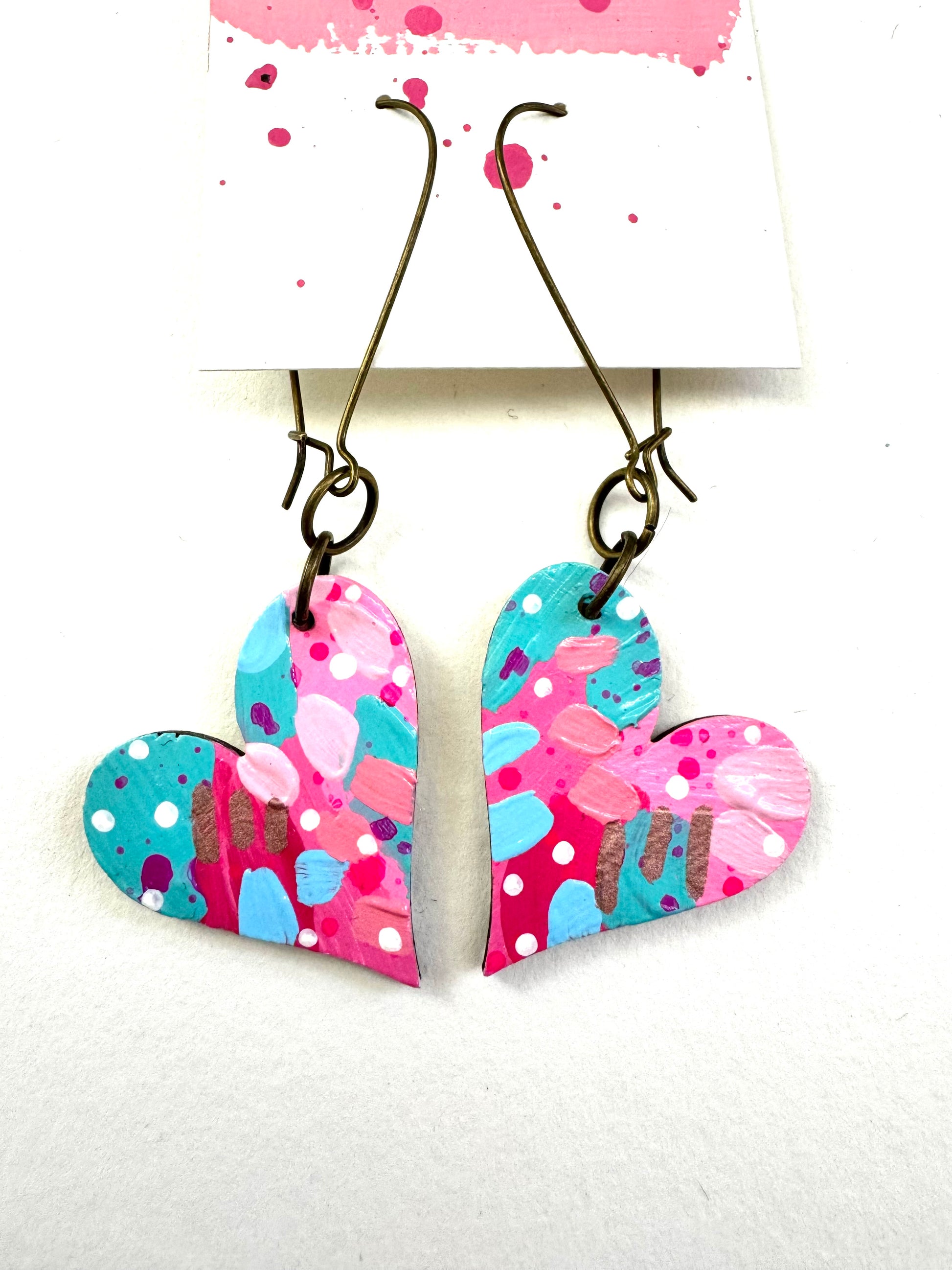 Colorful, Hand Painted, Valentine Heart Shaped Earrings 5