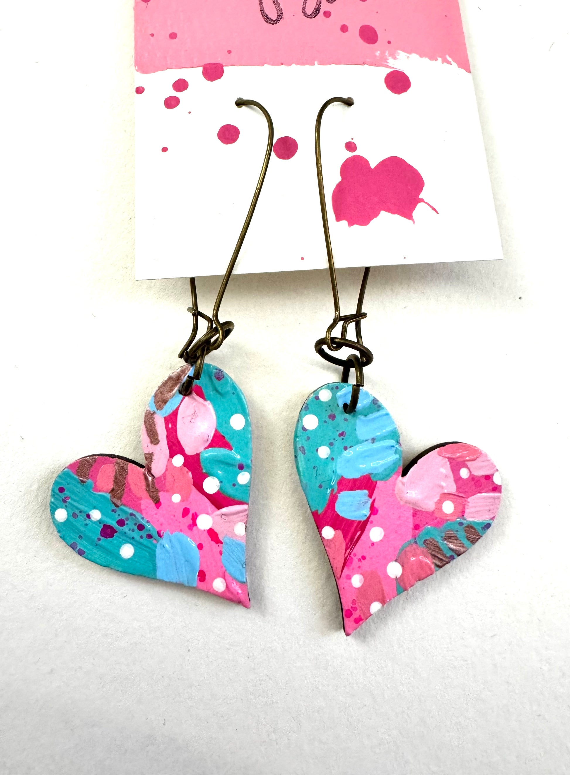 Colorful, Hand Painted, Valentine Heart Shaped Earrings 6