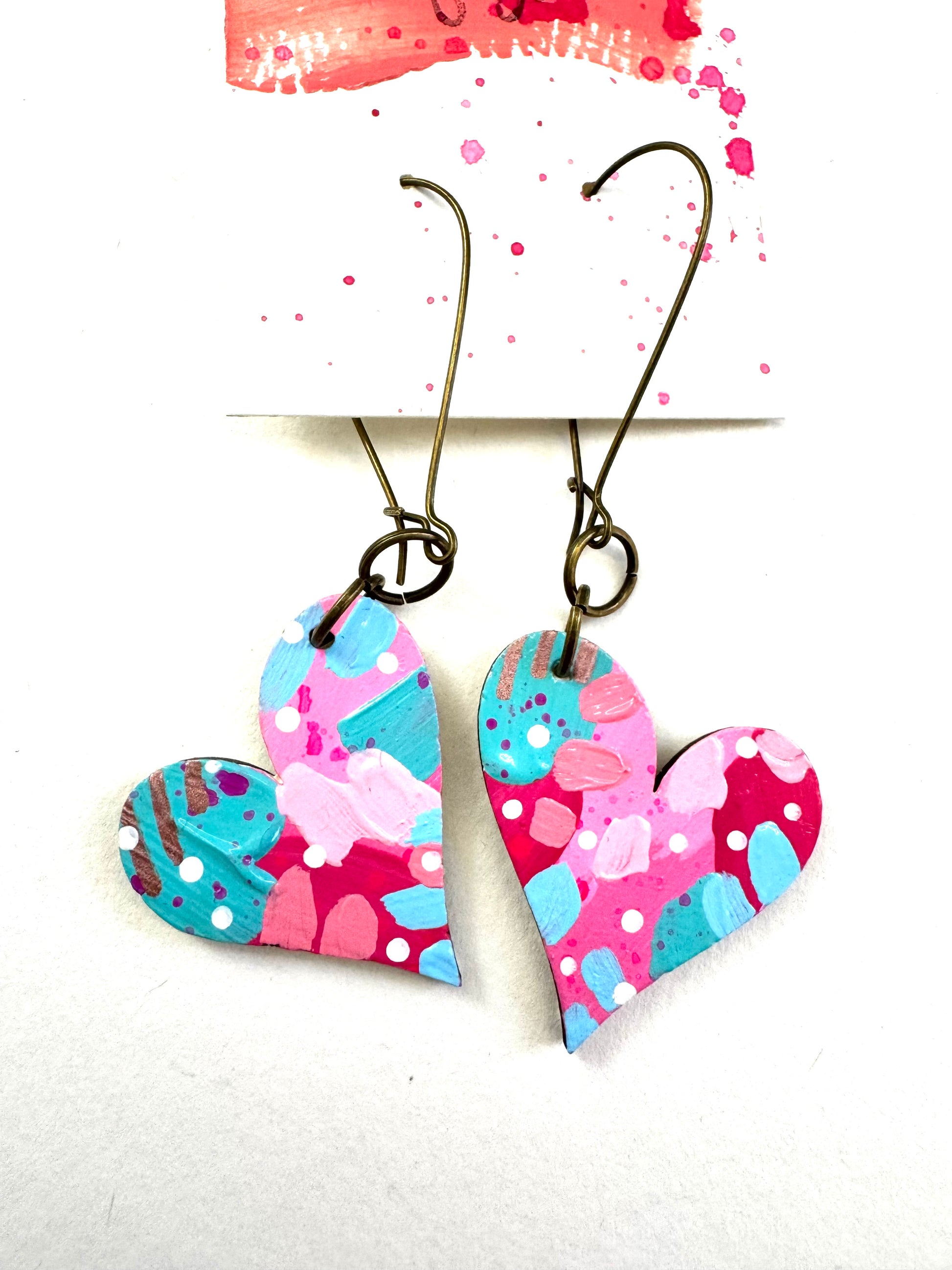 Colorful, Hand Painted, Valentine Heart Shaped Earrings 8