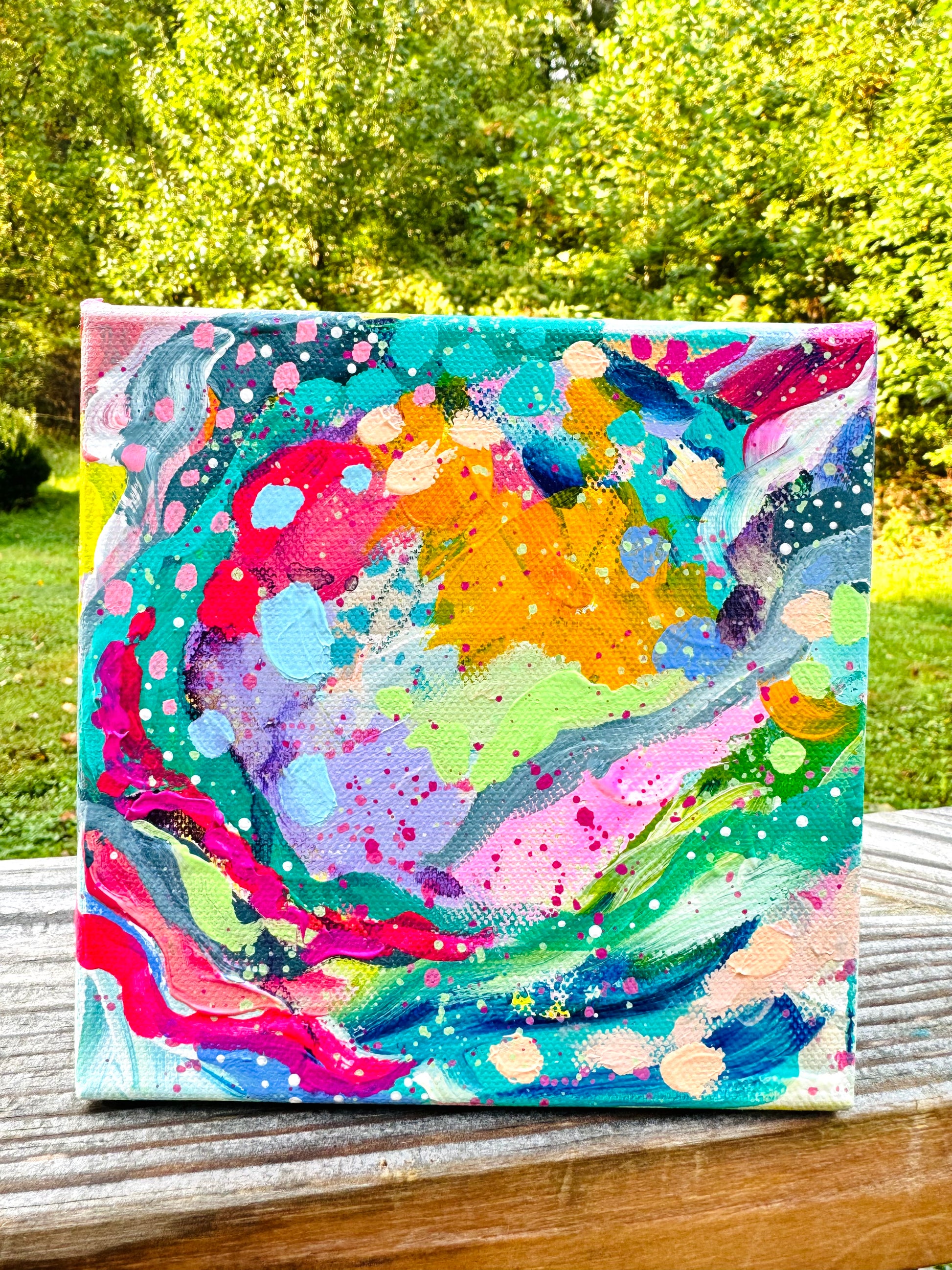 “Colorful Life” Abstract Painting on 6x6 inch canvas