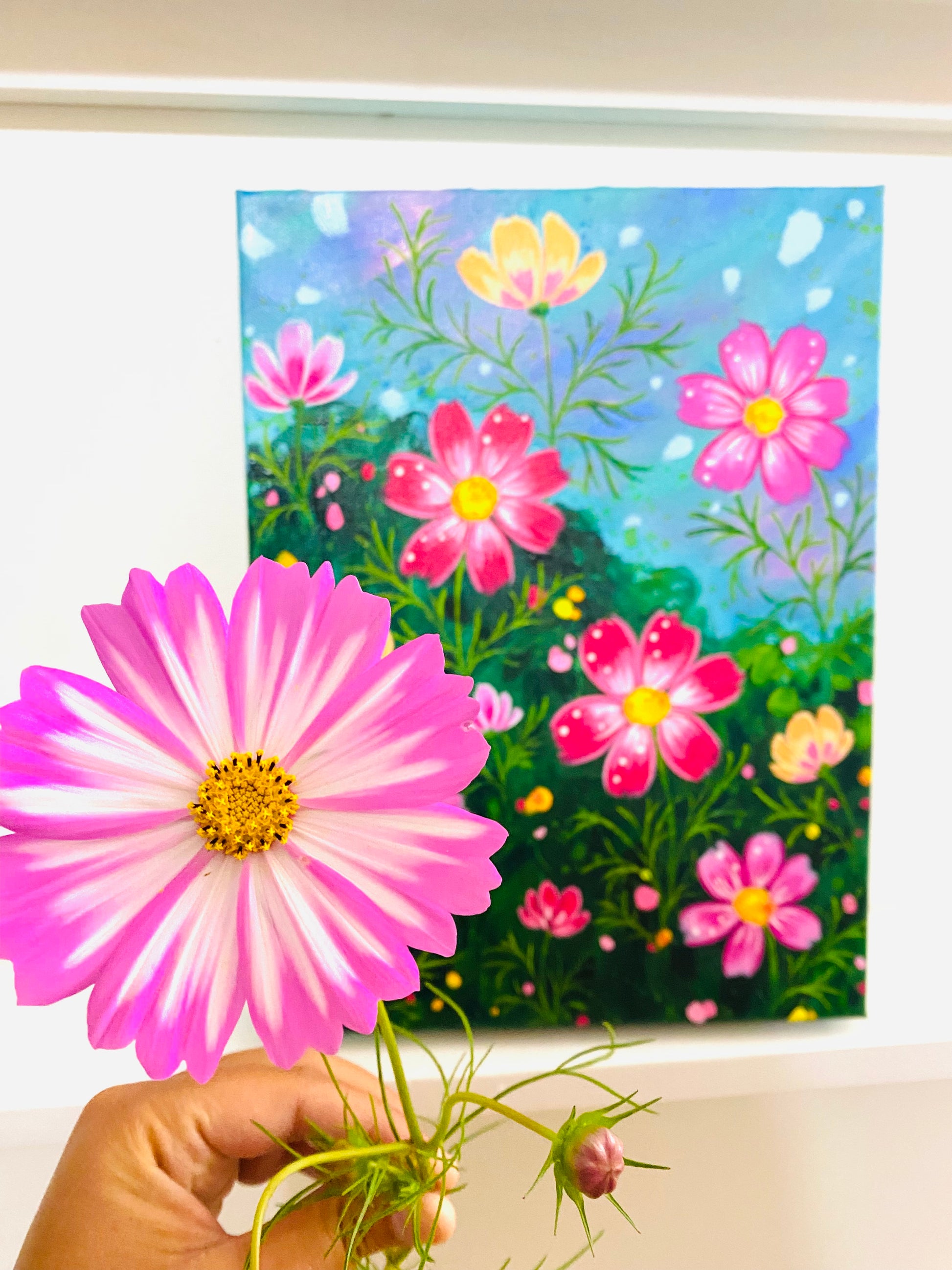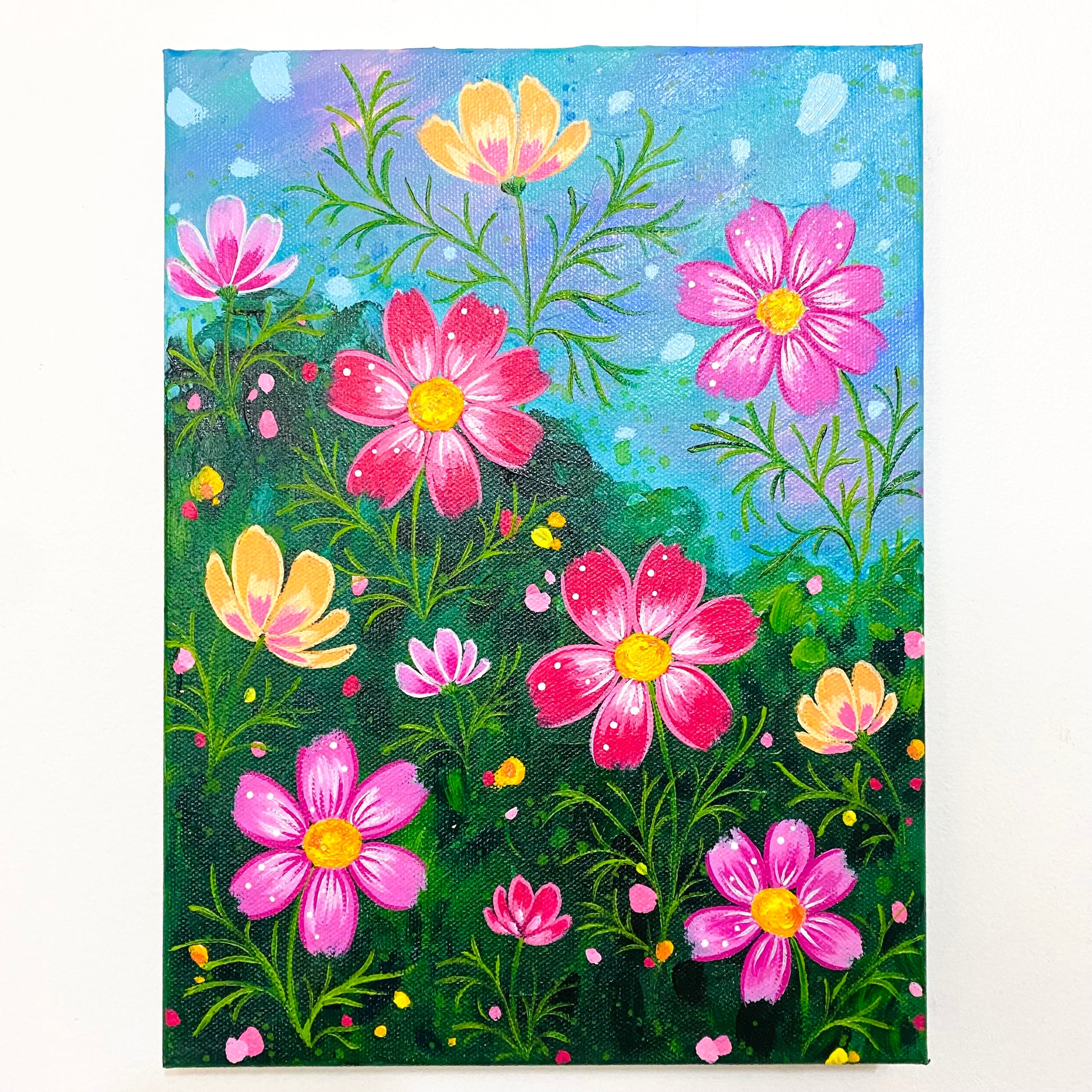 “Cosmo Fields” 9x12 inch original floral painting on canvas