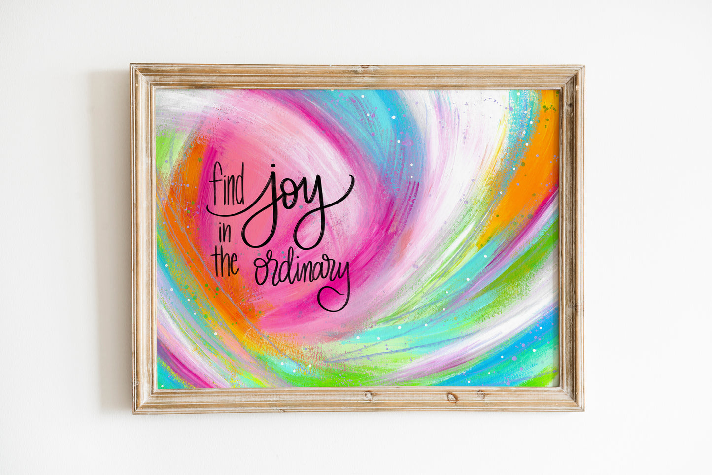 "Find Joy" is an art print on high-quality, fine art, matte paper that is printed in-house with our professional inkjet printer. Your print will be borderless and have a genuine signature added before each sale.