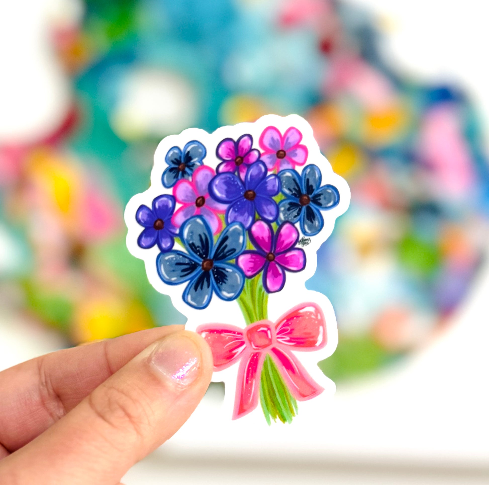Floral Bouquet with Pink Bow Vinyl Sticker December 2024 Sticker of the Month