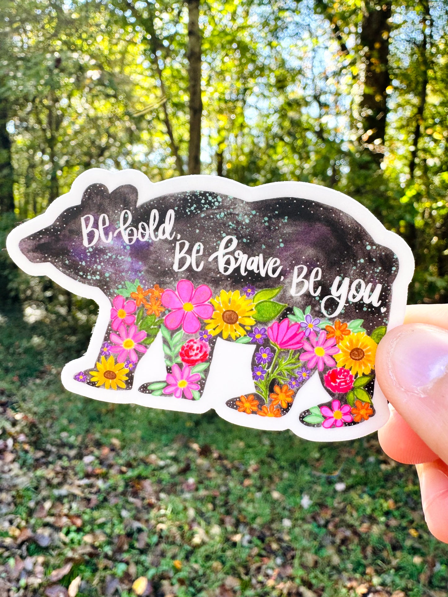 This listing is for a colorful Floral Black Bear “Be Bold Be Brave Be You” sticker!