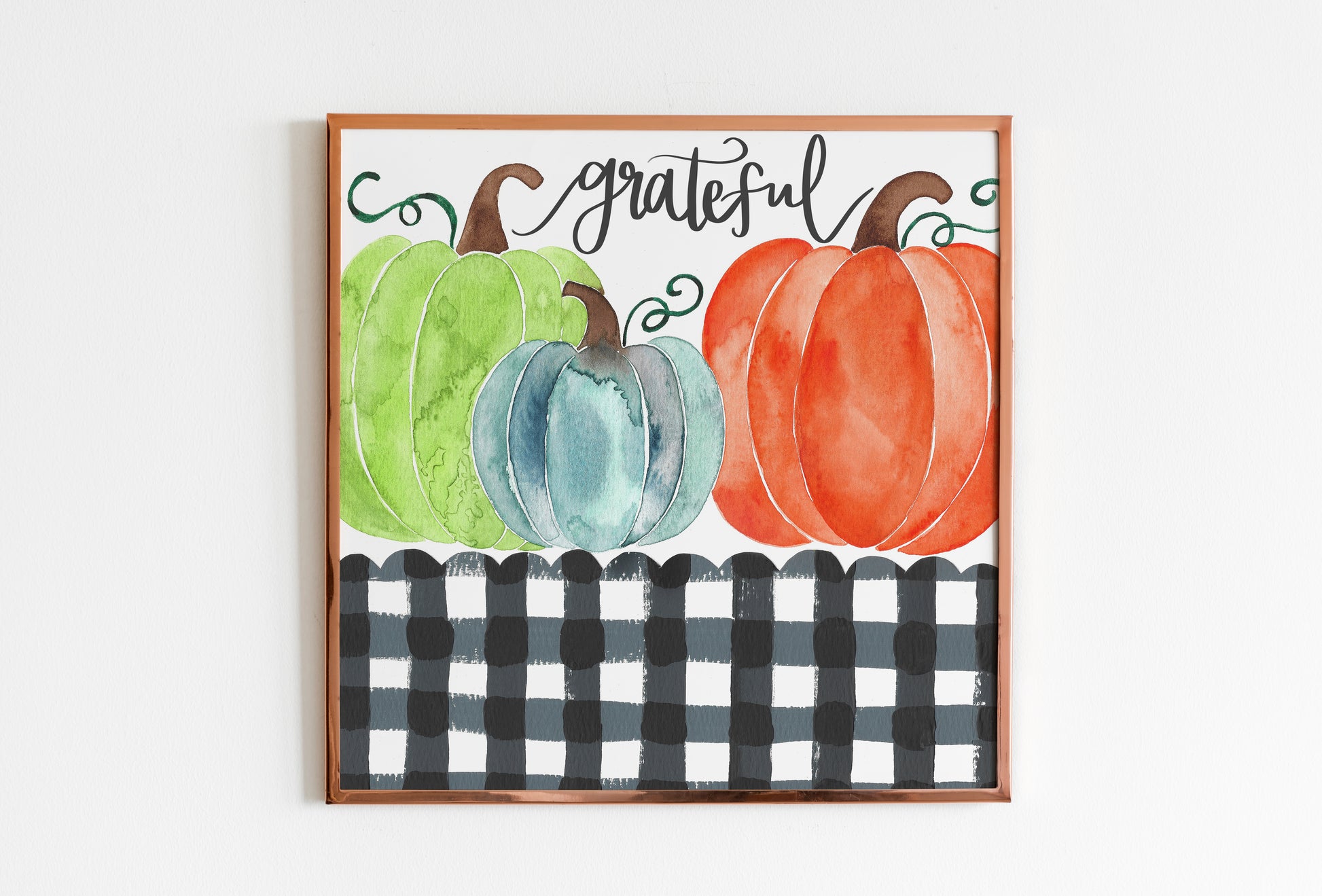 "Grateful Pumpkins" is an art print on high-quality, fine art, matte paper that is printed in-house with our professional inkjet printer. Your print will be borderless and have a genuine signature added before each sale.