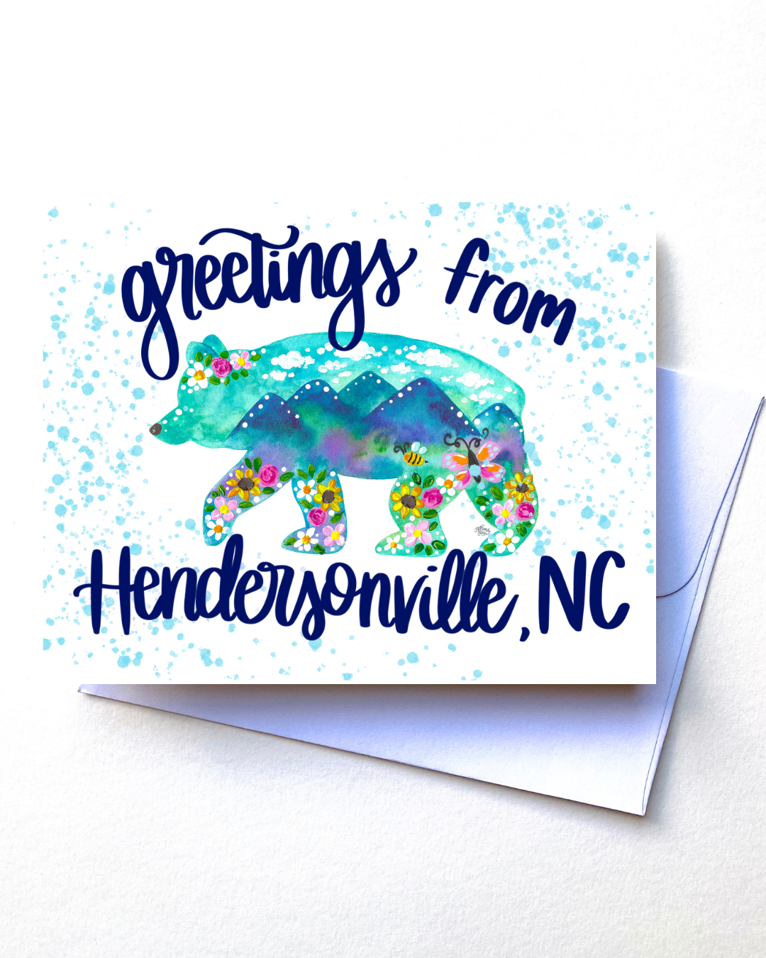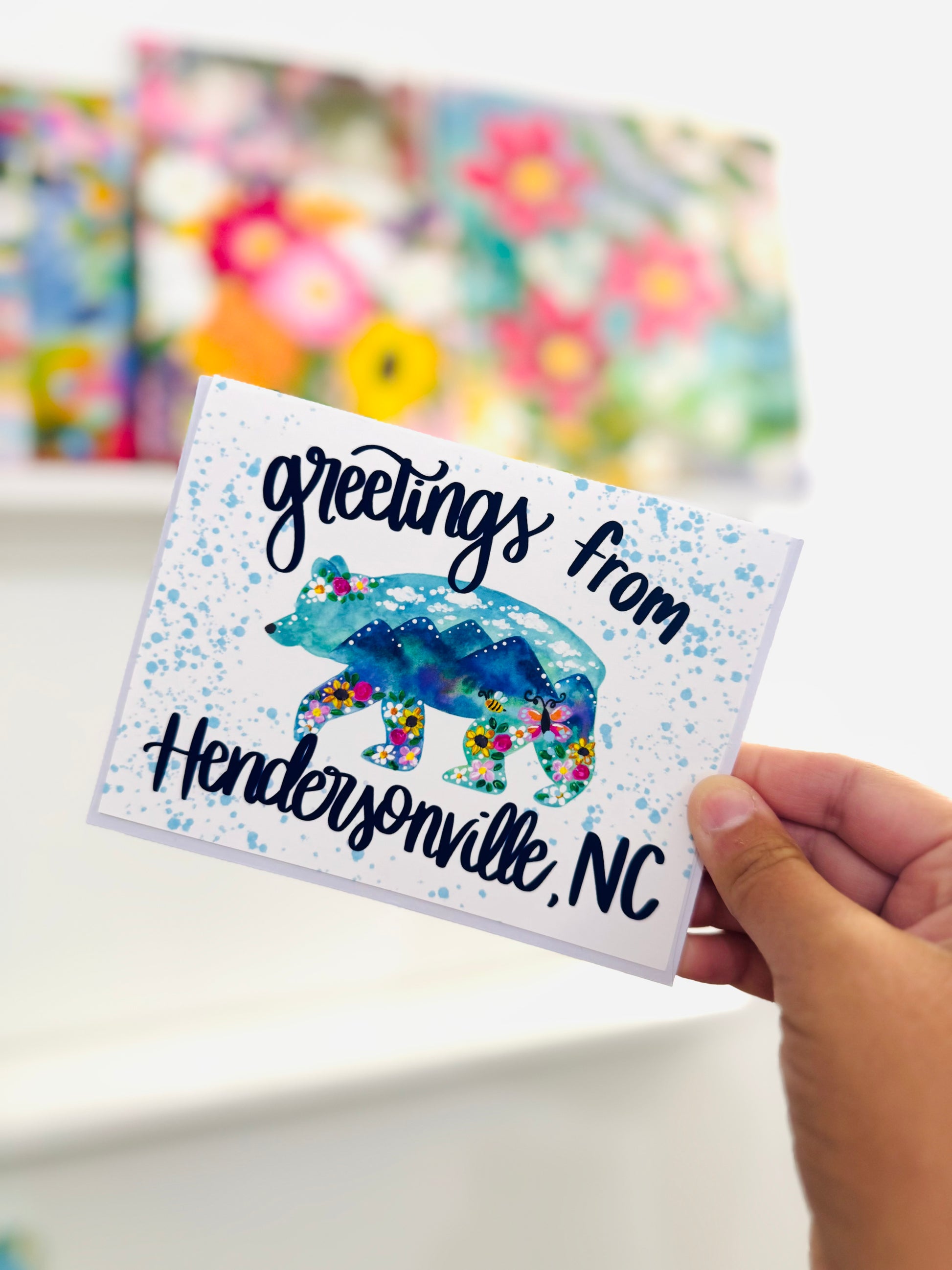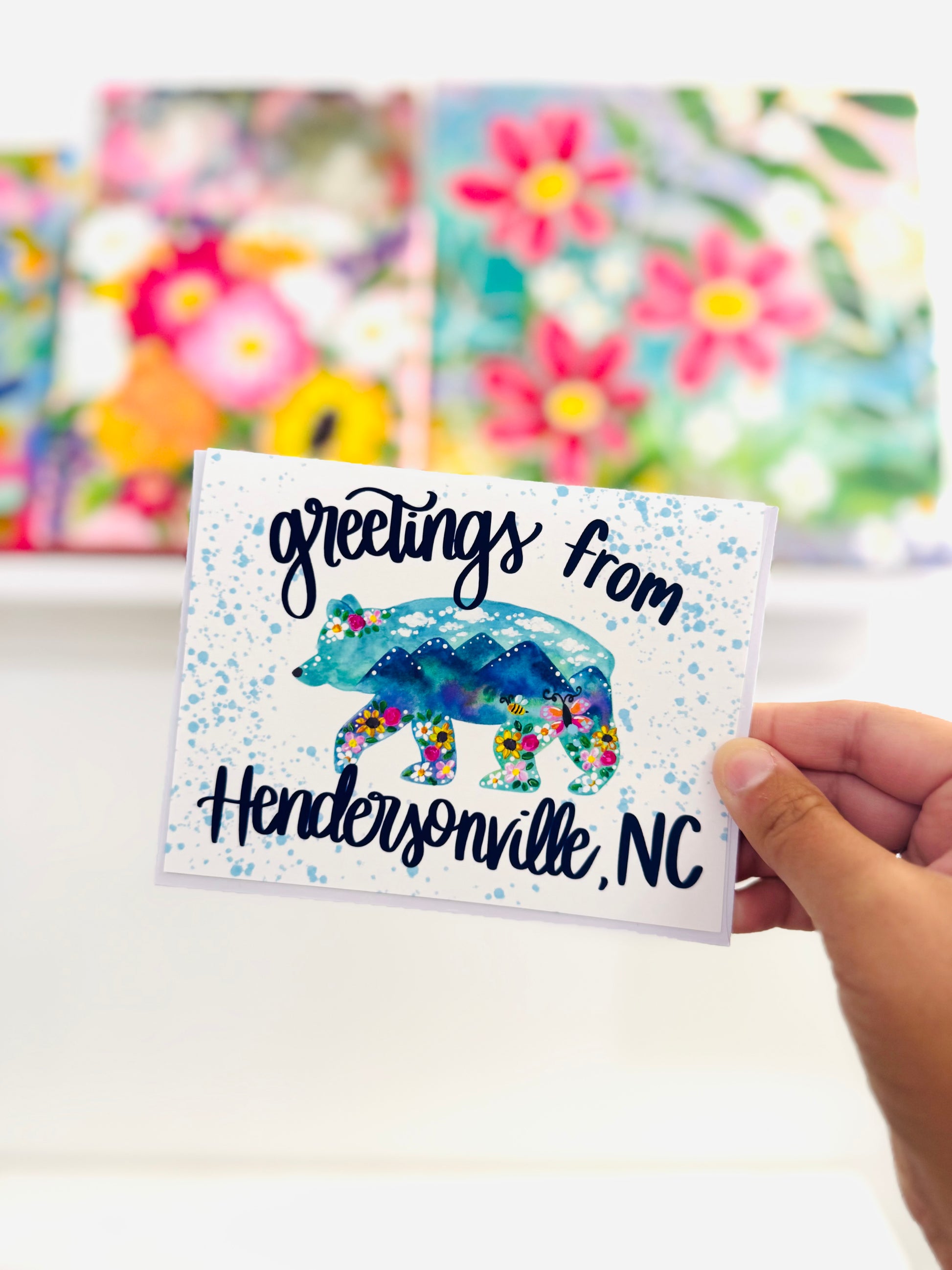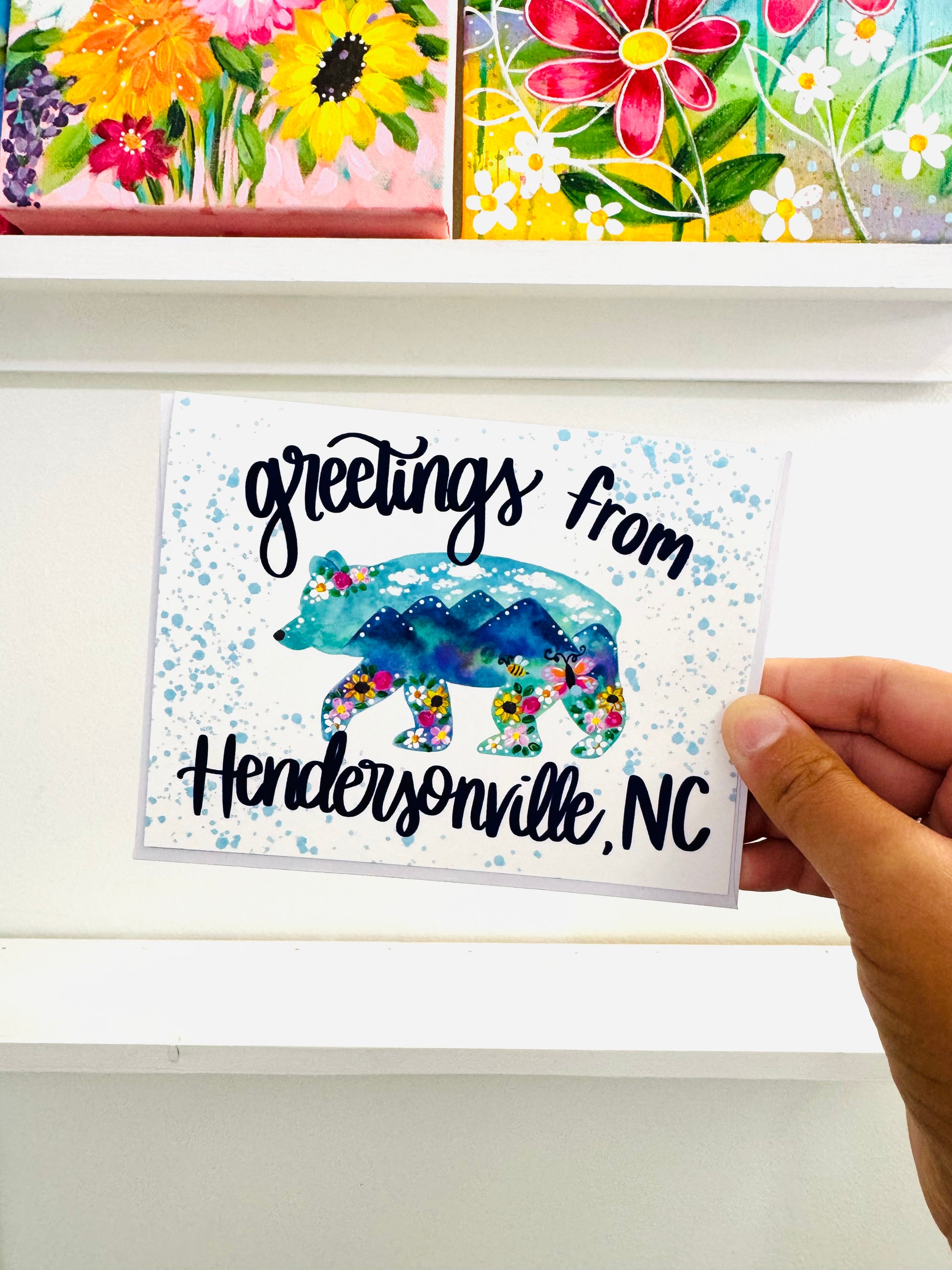 "Greetings from Hendersonville, NC Daisy Dogwood Bear" Card with Envelope